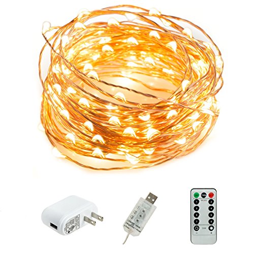 HSicily LED USB String Lights 8 Modes 33Ft 100 LEDs Starry Fairy Lights Plug in Remote Control with Timer for Wedding Halloween Christmas Party Bedroom Indoor Outdoor Decorative (Warm White)