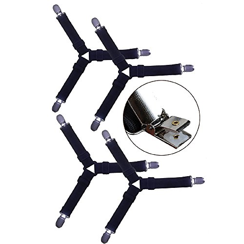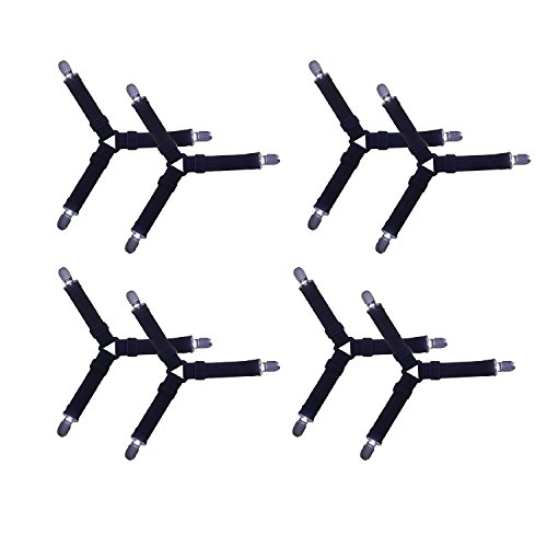 Eholily Triangle Adjustable Bed Sheet Fasteners Suspenders Straps, Black, Set of 8