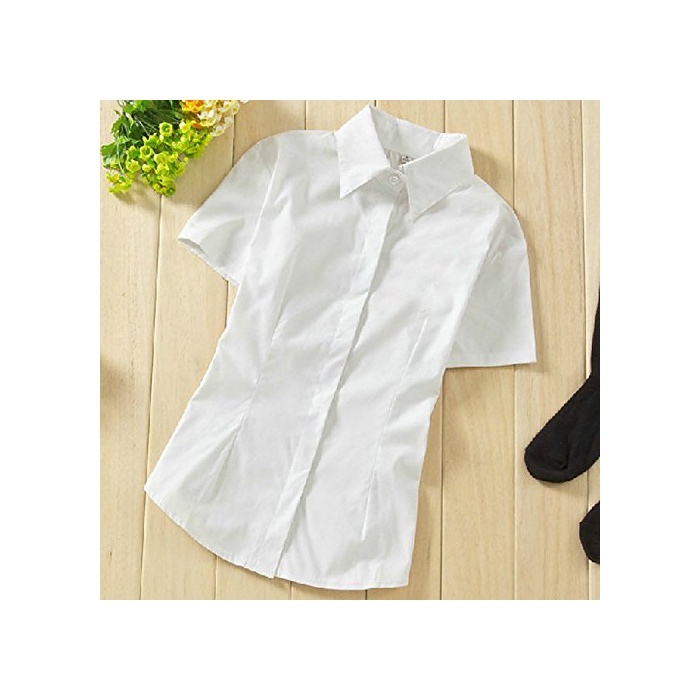 (하이 하트)Hiheart 레이디스 반소매 스쿨 와이셔츠 백여학생 복입학식 걸즈 포멀 Y셔츠 화이트 M