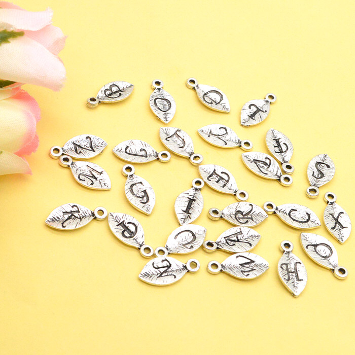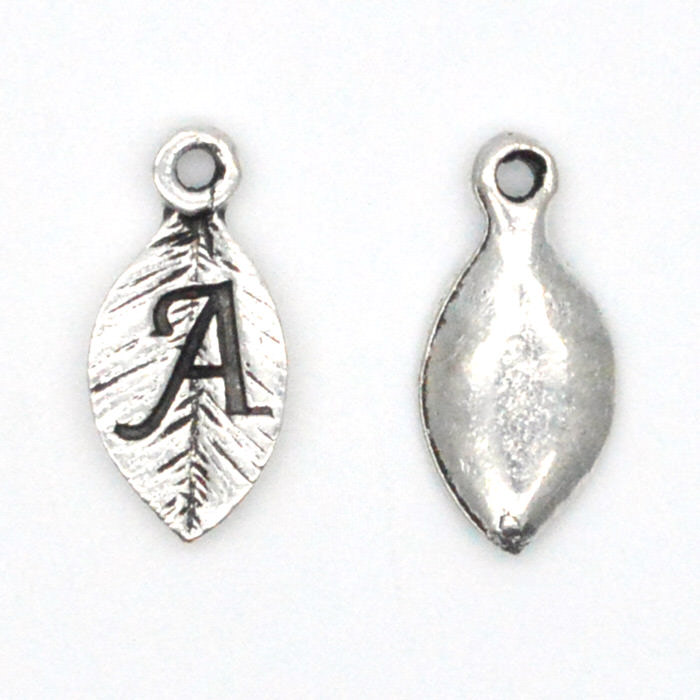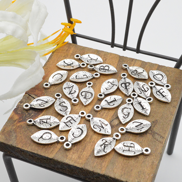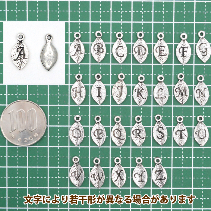■商品名:アルファベット 英字 イニシャル チャーム 葉 シルバー N 2個セット