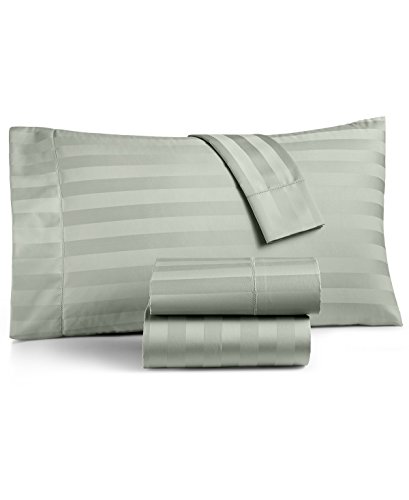 Charter Club Damask Stripe 550 Thread Count Full 4 Pieces Sheet Set Supima Cotton Glacier (Light Green)