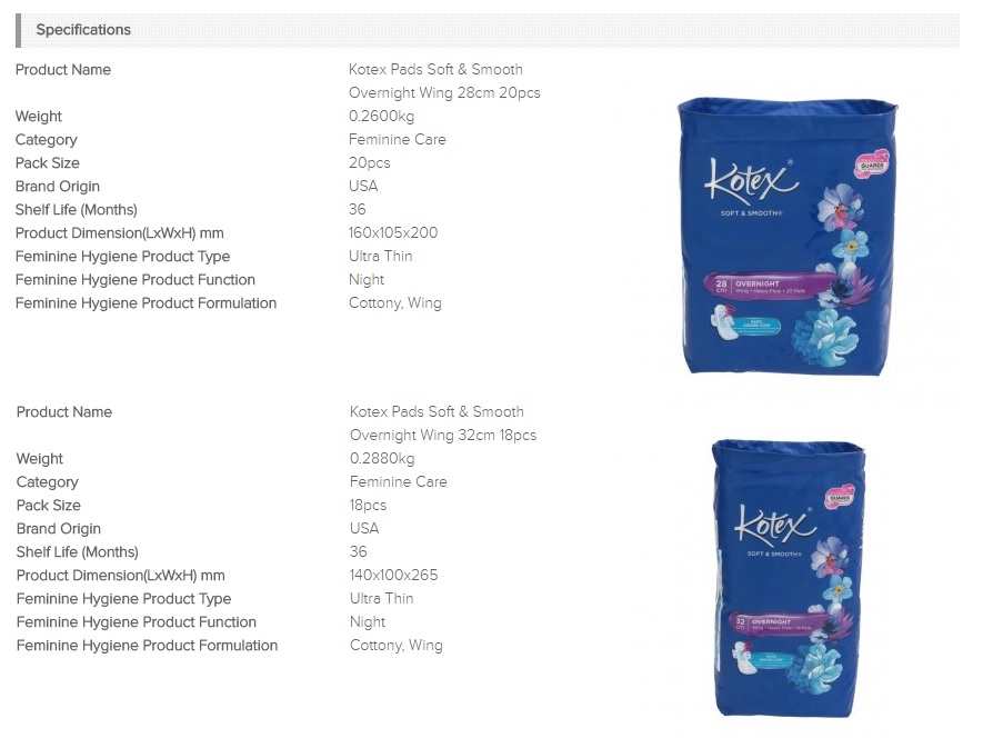 Kotex Pads Soft u0026amp; Smooth Overnight Wing