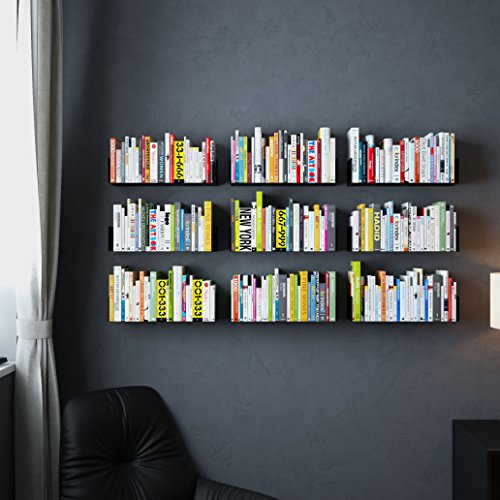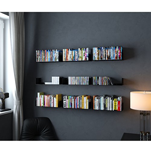 WALLNITURE Floating Wall Mount Metal U Shape Shelf Book CD DVD Storage Display Bookcase Black Set of 2