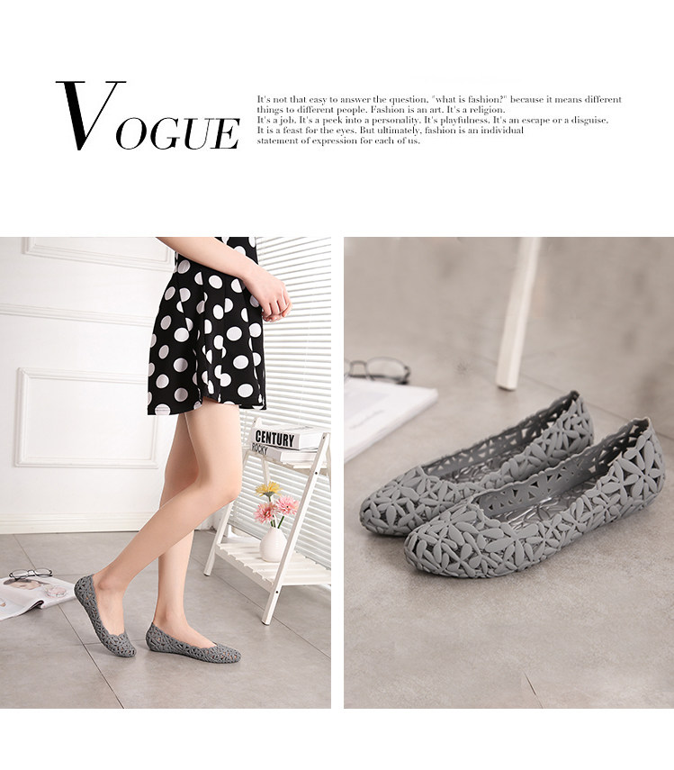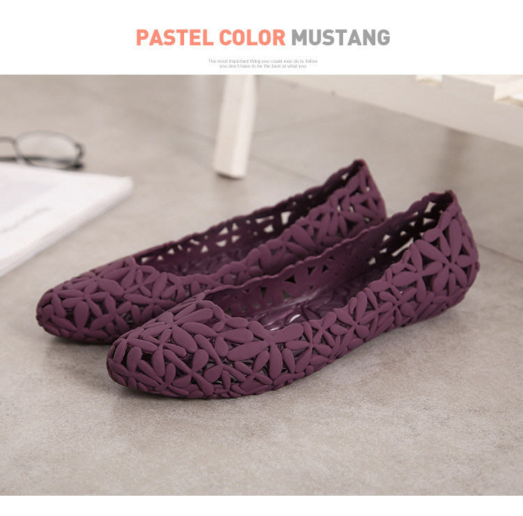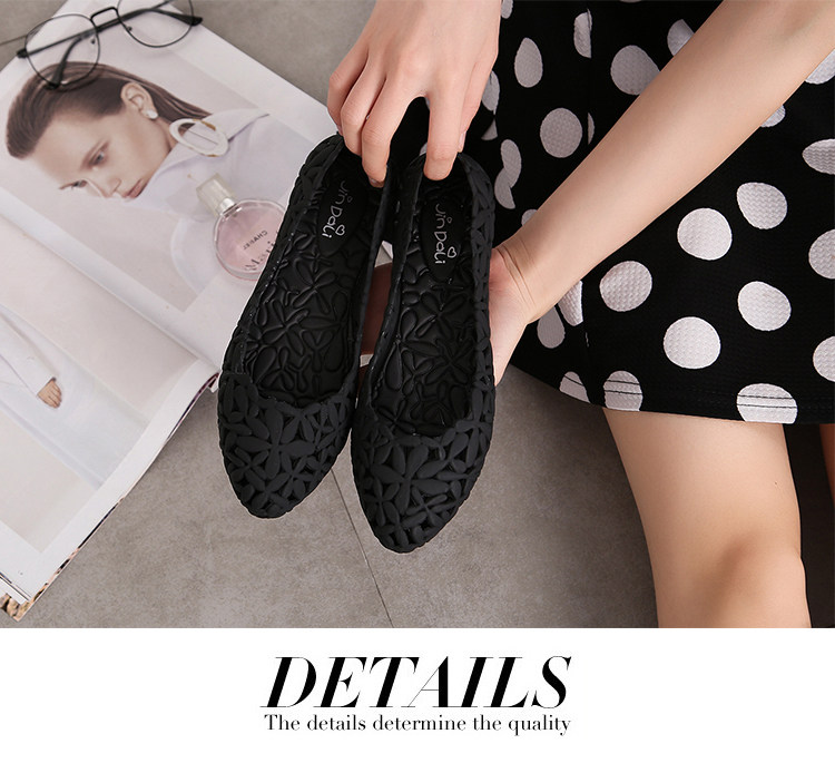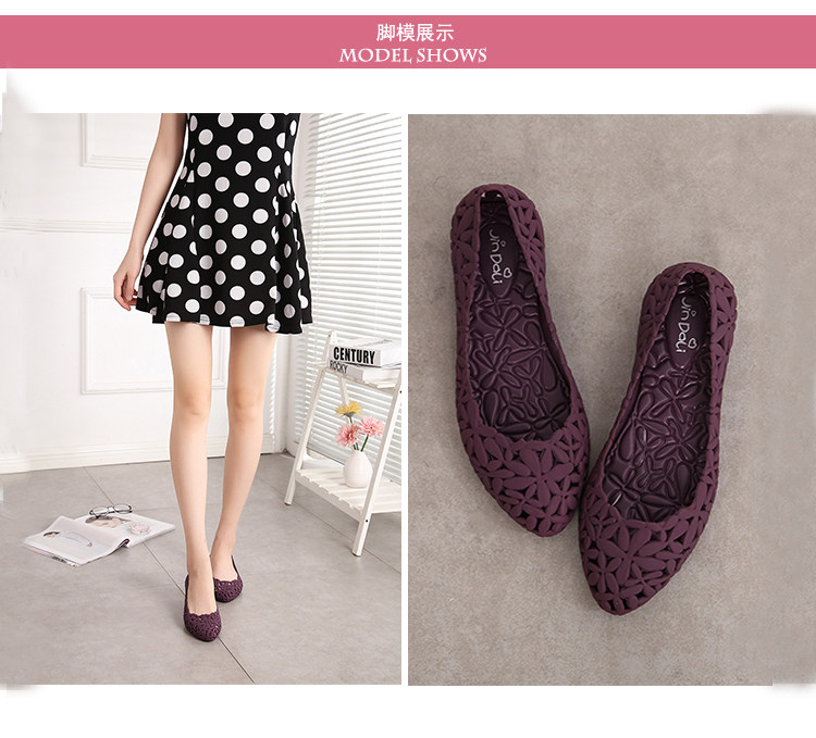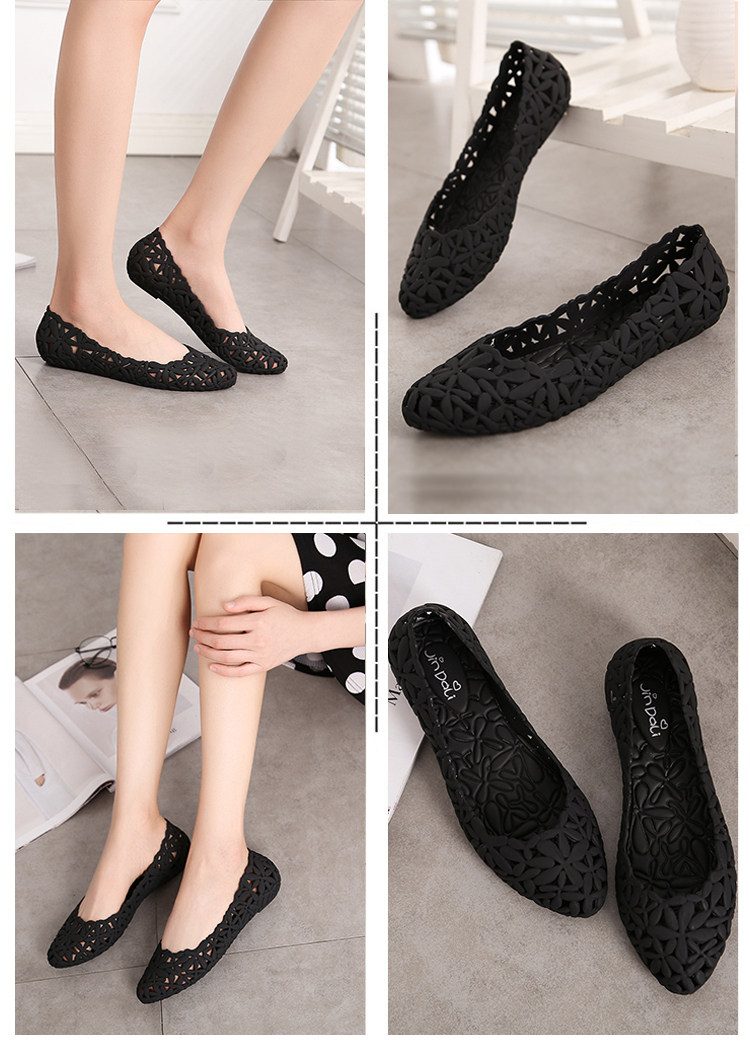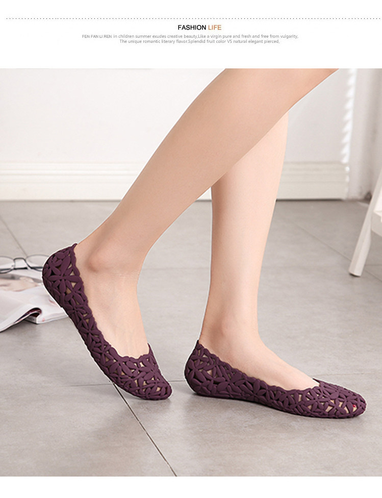 夏季新款花朵镂空果冻鞋女透气凉鞋平底柔软沙滩鞋时尚洞洞鞋