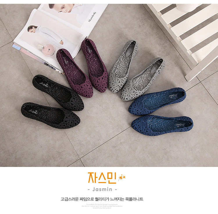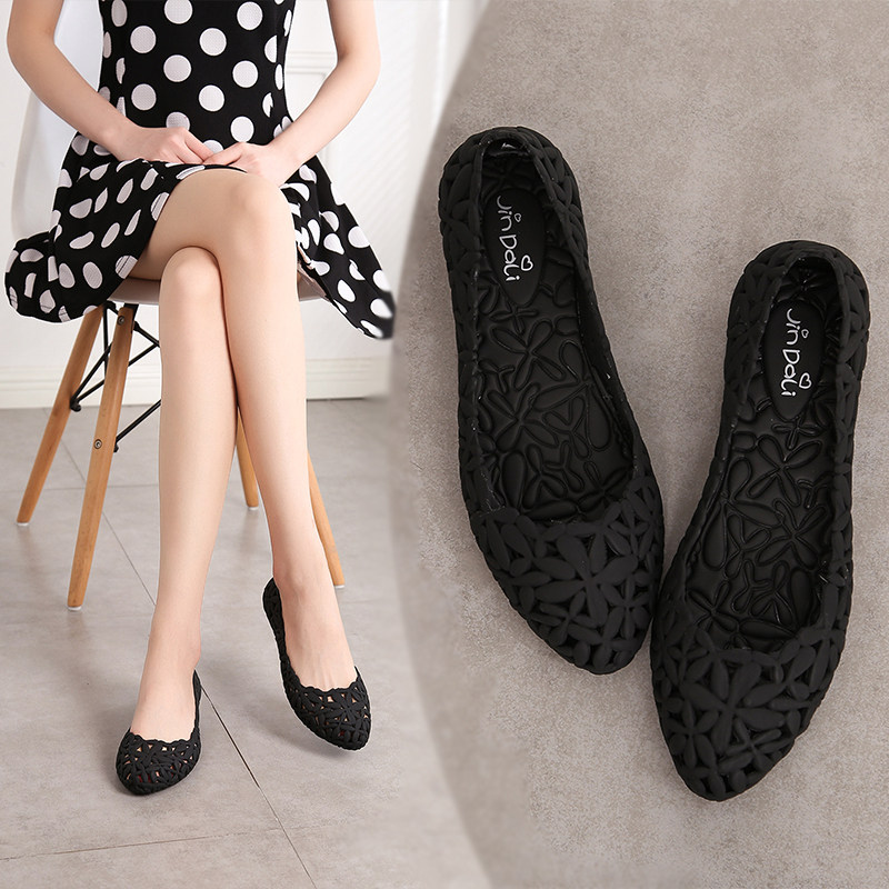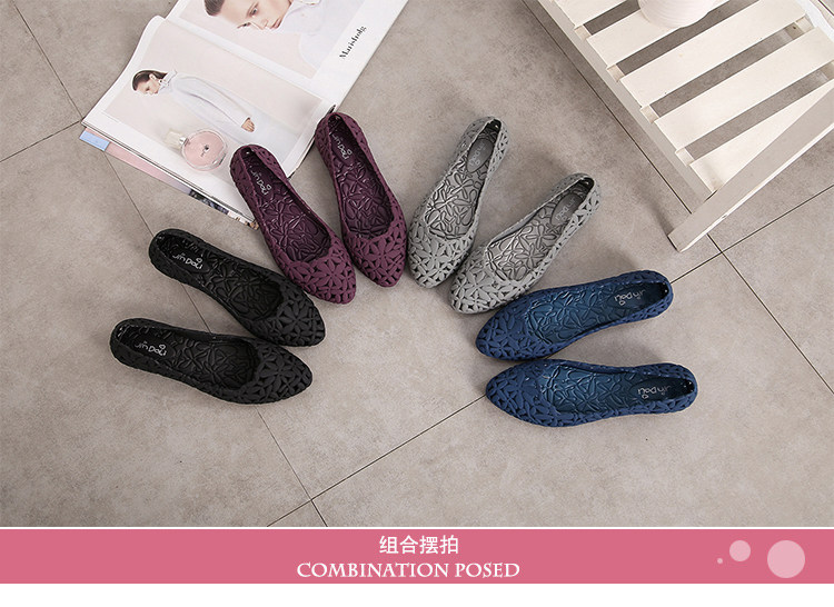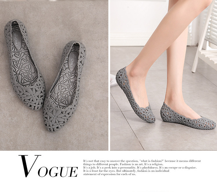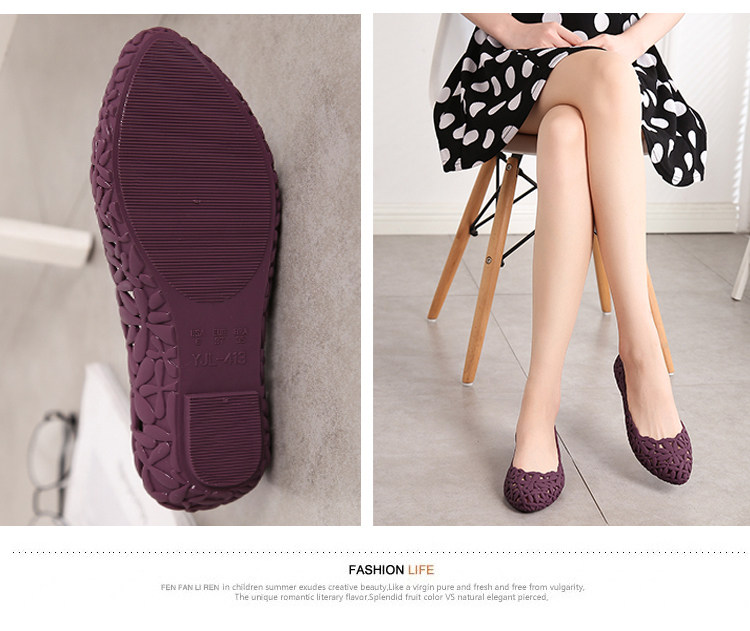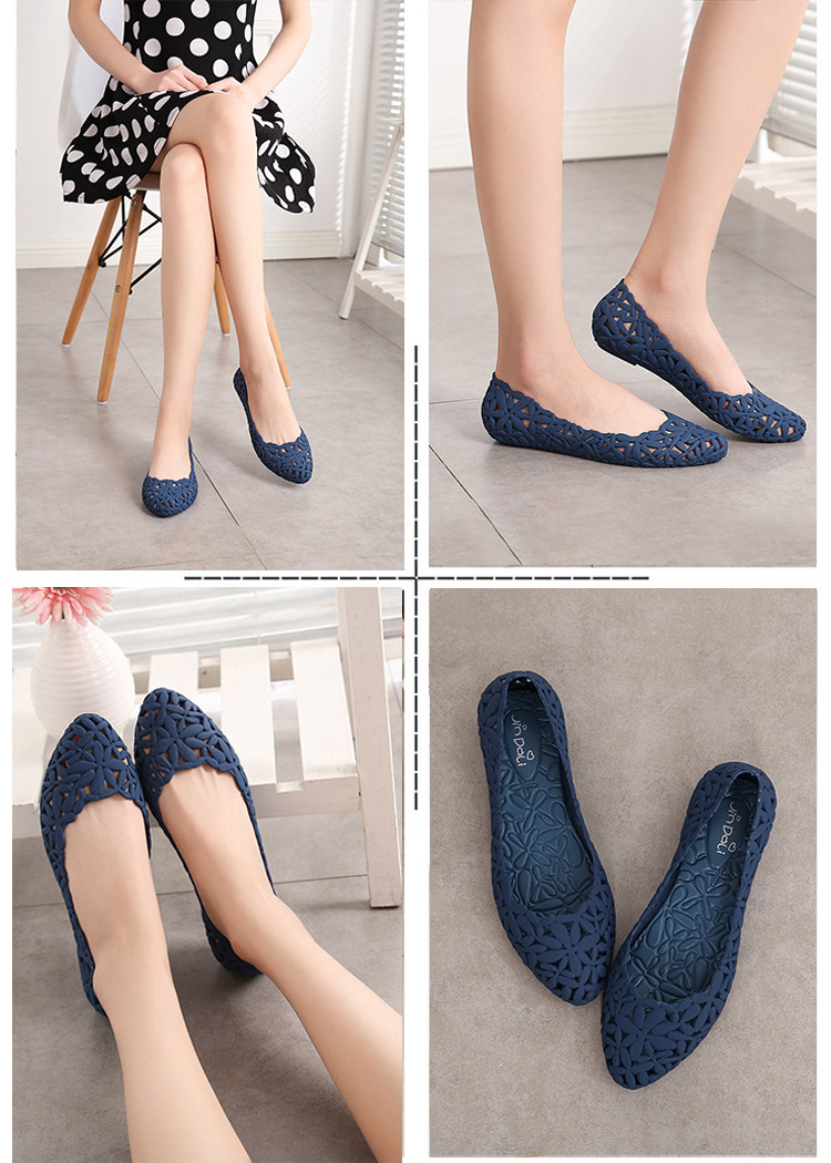 夏季新款花朵镂空果冻鞋女透气凉鞋平底柔软沙滩鞋时尚洞洞鞋