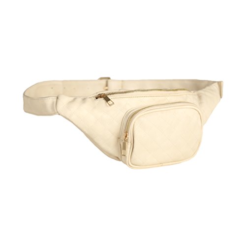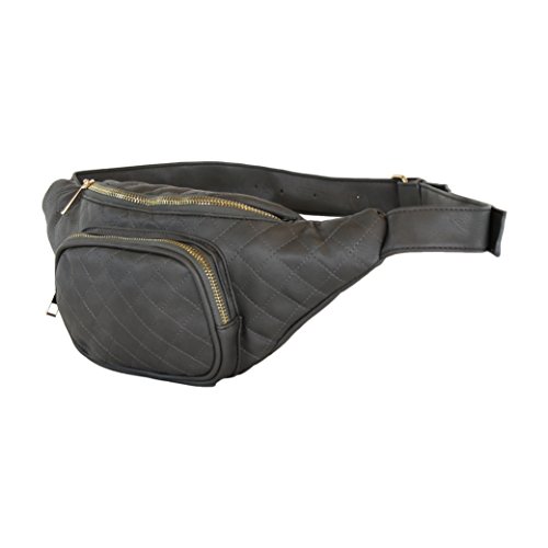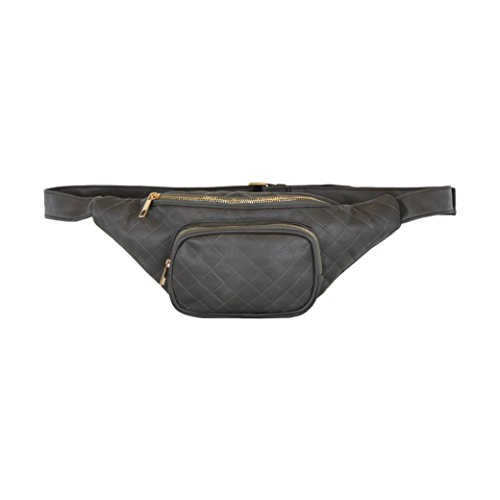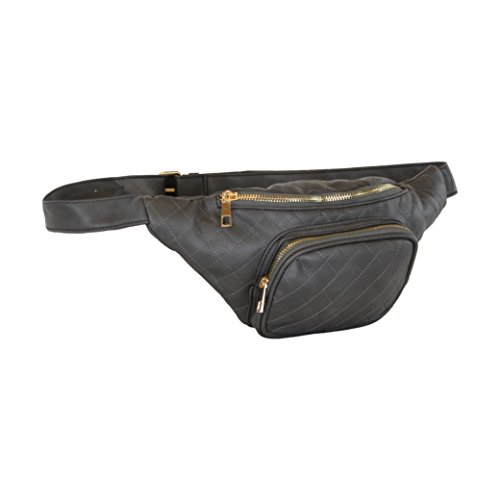 -. Brand : FLH Style -. ClothingSize : One Size -. Department : womens -. Feature : Chic fanny pack with a quilted design crafted from soft faux leather fabric / Waist pack features two zip front pockets for easy access to small essentials / Front pocket: 61/2 in wide by 4 ½ inches tall/ Main pocket: 14 in wide by 5 ½ in tall / Waist strap adjusts with a gold tone buckle up to a 46 inch waist / Great for any travel, concerts, or everyday wear. Makes the perfect gift! -. PackageQuantity : 1 -. ProductGroup : Apparel -. ProductTypeName : LAGE -. Size : One Size -. Title : Quilted Multi Pocket Fanny Pack, Faux Leather Waist Pack w/ Adjustable Buckle