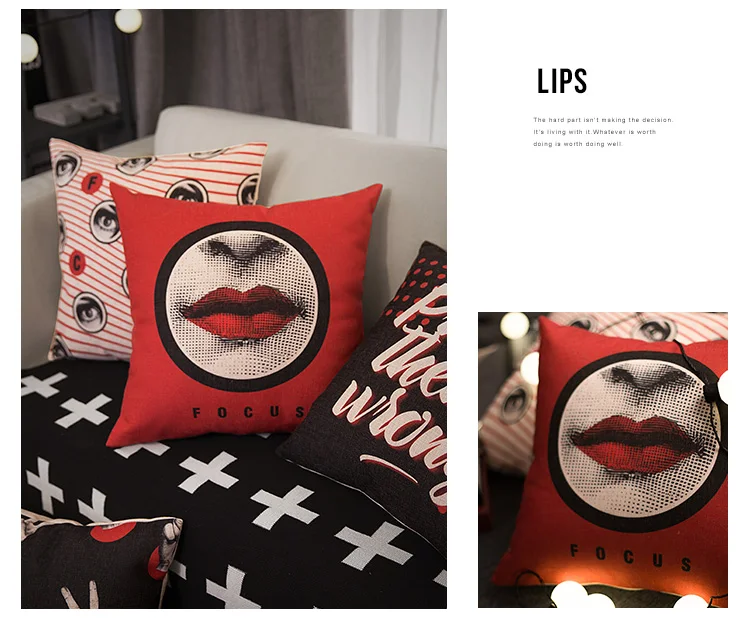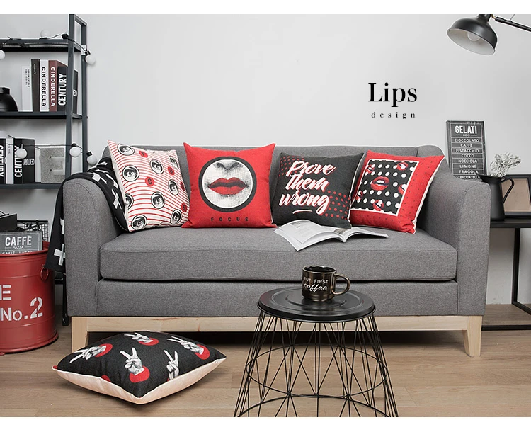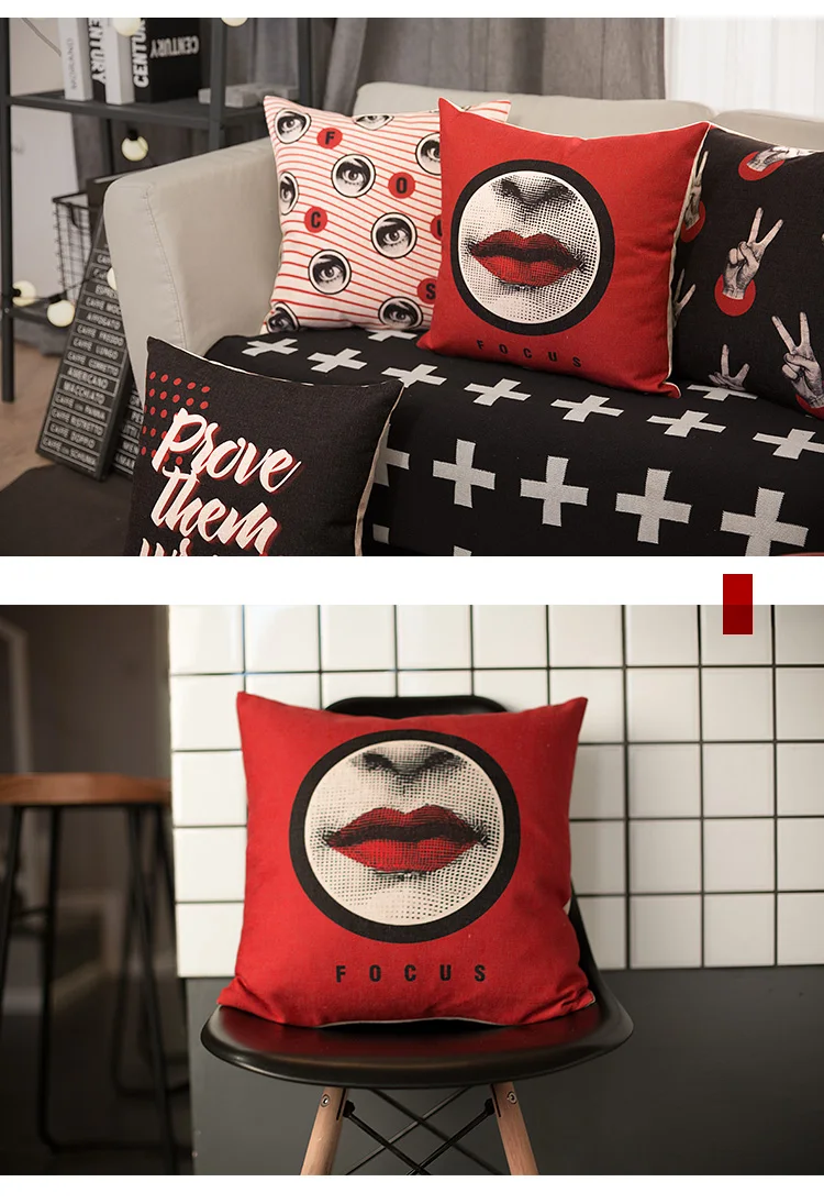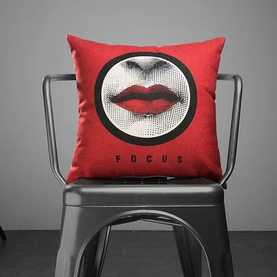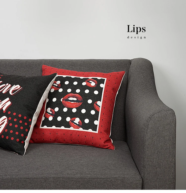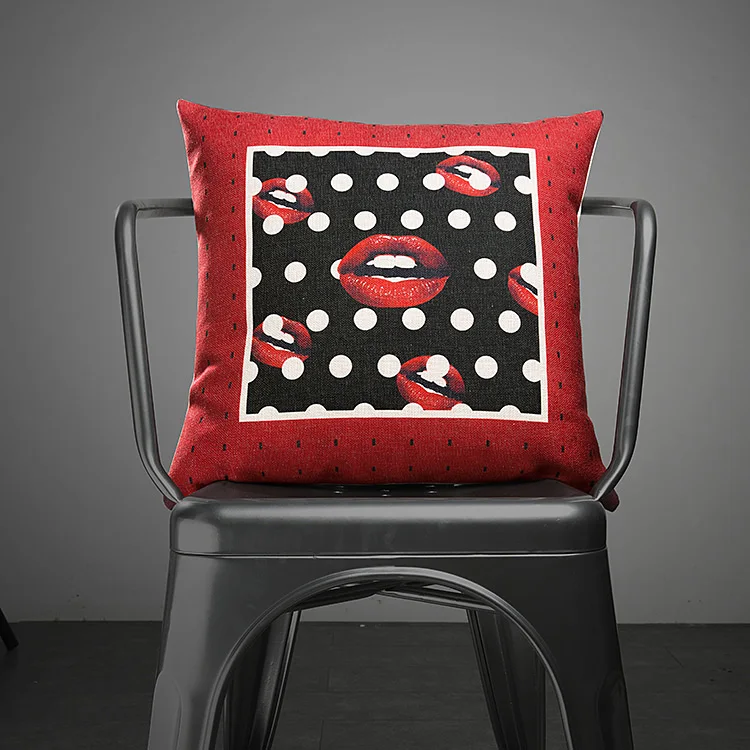 Stlye:Pop Style Black Red Lips Cushion Cover