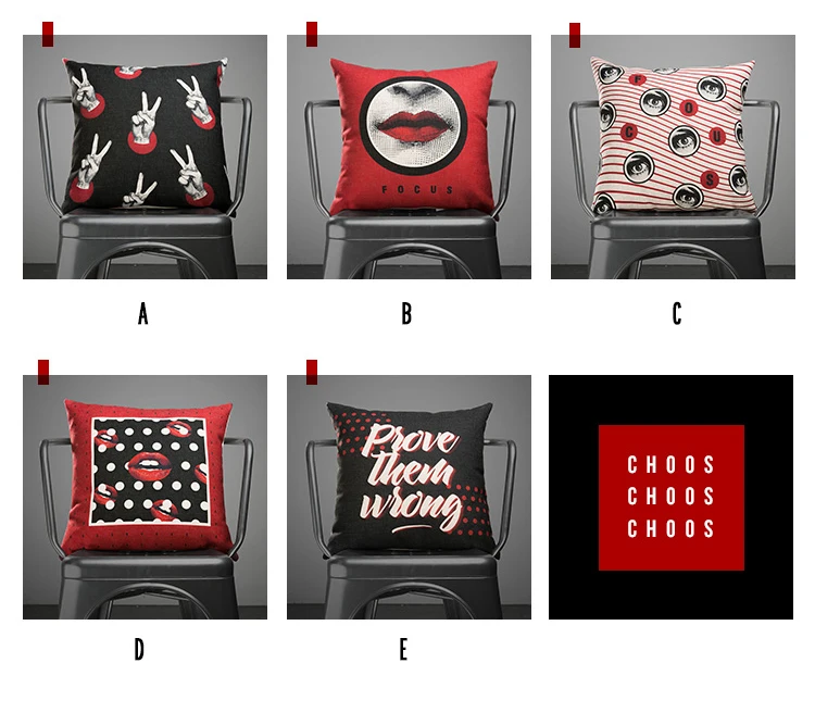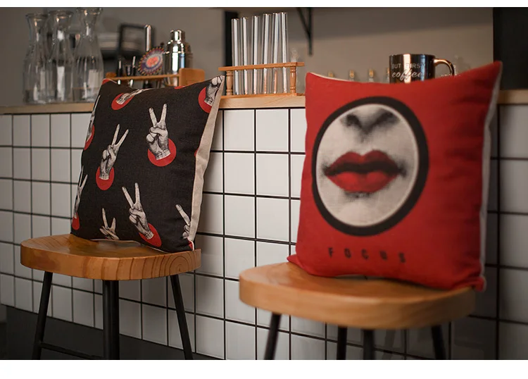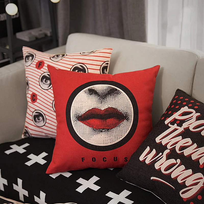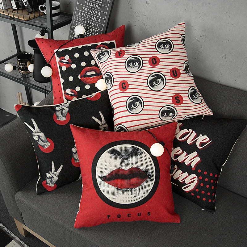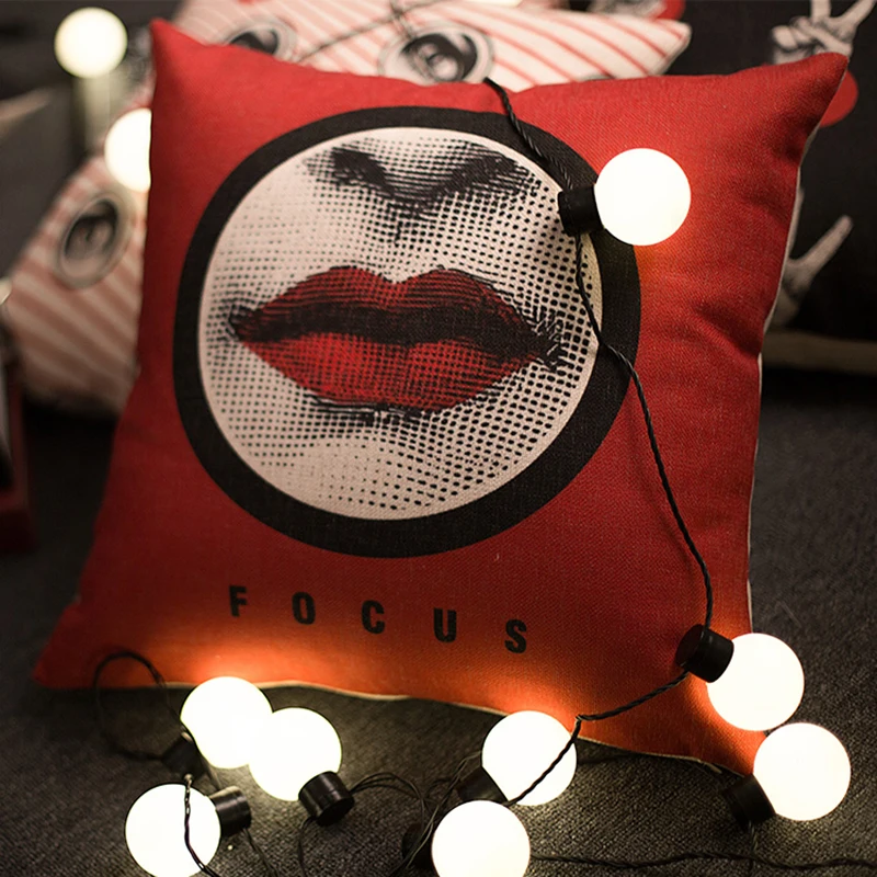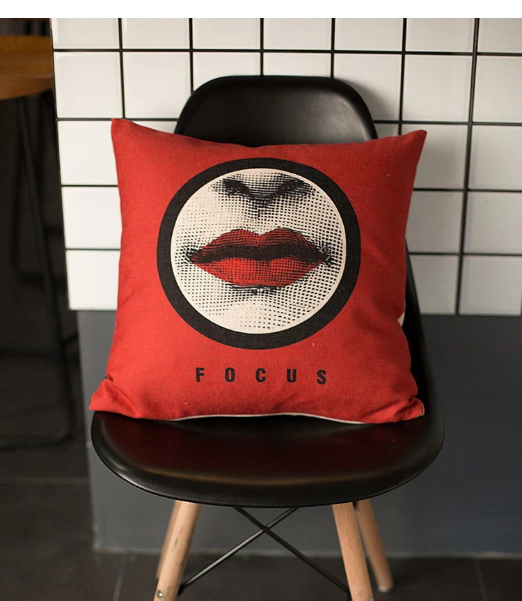 Stlye:Pop Style Black Red Lips Cushion Cover