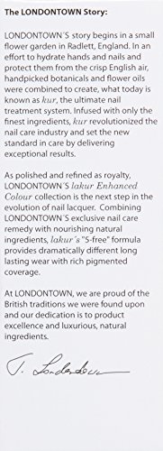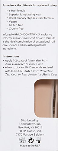 Developed to adhere to London town' s kur: nail hardener; this reaction creates a molecule bond that reinforces nail strength and works to prevent nails from breaking, cracking and splitting. Infused with our revamped family remedy and a unique blend of vitamins and minerals to enhance healing and nail health. Long lasting shine."5-free," does not contain the toxic chemicals; formaldehyde-free toluene-free dbp-free formaldehyde resin-free camphor-free vegan, gluten-free and cruelty-free.