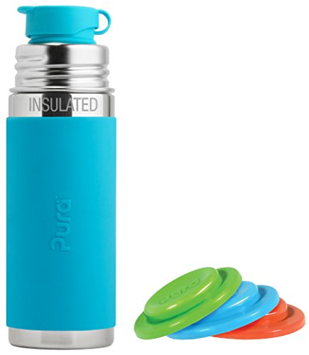 -. Binding : Baby Product -. Brand : Pura -. Feature : 100% Plastic Free vacuum insulated bottle keeps beverage warm or cold up to 24 hrs. with ice/8 hrs. without ice. Silicone sealing disks can be used to convert your bottle to snack cups or storage. / Includes leak-proof Big Mouth sport top; crafted of medical grade silicone; top not for hot beverages / Dishwasher Safe, food grade #304 (18/8) stainless steel and medical grade silicone has no BPA, EA, PVC, or other toxins and no lining. / Compatible with other Pura silicone components and accessories; limited lifetime warranty / Colorful silicone sleeve for grip with a convenient finger loop -. Label : Pura -. Manufacturer : Pura -. ProductGroup : Baby Product -. ProductTypeName : BABY_PRODUCT -. Publisher : Pura -. Studio : Pura -. Title : Pura Sport Jr. Stainless Steel 9 Ounce Vacuum Insulated Bottle Plus Set of 3 Seal Disks