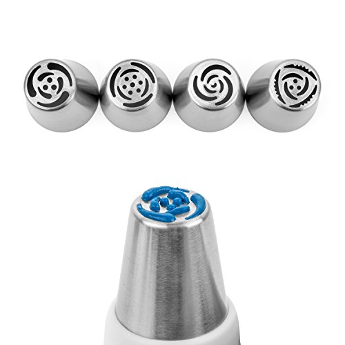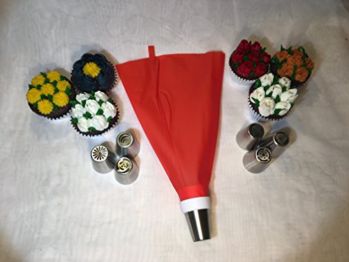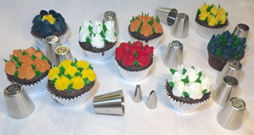 - ✅ GREATER VALUE: Face it, 30 tips and eBooks sound ok before considering kitchen space and unlimited YouTube tutorials! Our kit is value-focused in a small 6"x6"x2" easy-to-store craft box. It has a nice variety of Russian Tips plus all the smaller tips, couplers, and reusable piping bags you'll commonly need. Others don't even offer a nozzle to write on a cake! Create beautiful flowers, decorative borders, write a special wish, or make those flower leafs without placing a separate supply order!