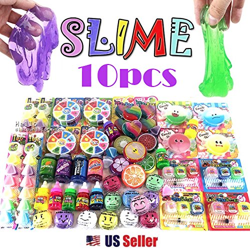 Your 10pcs slime toy will be randomly selected and send from following list : - DIY Powder Jelly Slime Monster - Vomiting Egg Slime Monster - Color Changing Slime Monster - Vivid Color Stacking Slime Monster - 5-color Heart Shaped Case Pearl Jelly Slime Monster - 5-color Star Shaped Case Jelly Slime Monster - 6-color + 1 Glow Lined Up Jelly Slime Monster