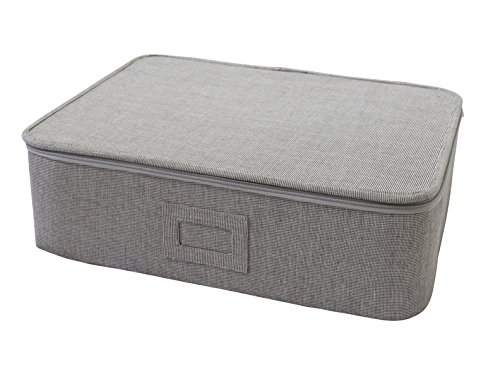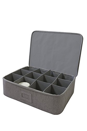 Studio : In This Space Publisher : In This Space Product Description 18.75" x 14.25" x 5.5" h Made from durable twill fabric with fiber-board insert for better protection Holds maximum 12 cups up-to 5.5" tall Front label holder for identification and zipper closure The only hard-shell storage chest in the market that is durable and stylish designed 0