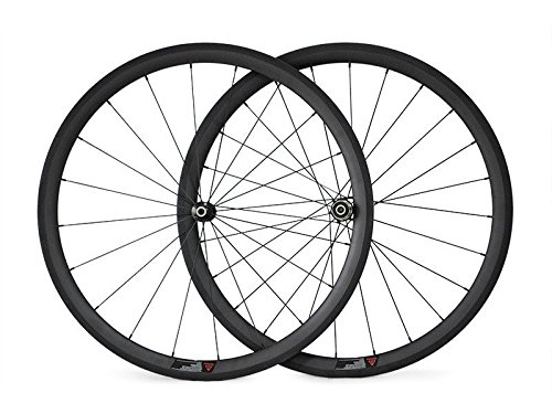 Studio : Hulk-sports Publisher : Hulk-sports Product Description 1.Size:700C*38mm clincher 2.Type:Road Bikes 3.Weave:3K/UD 4.Width:25mm 5.Hub:Novatec AS01SB/FS12SB Black Hubs front: 2 sealed bearings O.L.D: 100mm weight: 85g; rear: 4 sealed bearings O.L.D: 130mm weight:250g 6.Material:Carbon Toray T700 Carbon Fiber 7.Drills: front 20 holes,rear 24 holes 8.12-Layer Design on Brake Track,6-Layer Carbon Body 9.cassette body: Shiman 8/9/10/11Speed or Campagnolo10/11Speed Hub color:Black,Red or white colors avaiable 10.Spoke:Pillar PSR Aero 1423 Straight Pull spoke black 11.Spoke Pattern:front Radial,rear 2 cross drive side 12.Nipples:Pillar alloy external nipple,black or red available 13.Max Rider Weight:95kg 14.Max Tire Pressure:125PSI 15.Recommended Fields:Flat Field 16.Weight:1490g /-30g/pair excluding skewers 17.Including:Quick Release and Brake Pads 18.Warranty:One Year FAQ: Q: Is this a wheelset or a single wheel? A:There are several kinds to choose,according to the different needs of each person can choose a single wheel or a wheelset. Q: Is the tri-spoke wheel fit for my track bike or fixie bike? A: Yes,it can for track and fixie bike,when you order,please choose road or fix wheel. Q: What size tire should I buy to fit the wheel? A: Our road bike wheels and tri-spoke wheels are basic for 700*23C tire. Q: What does 3K/UD mean? A: The difference between 3K and UD is rims appearance,see the appearance comparison chart. Q: How can I choose other appearance of the wheels? A: Our wheels have 4 kinds of the appearance,3K Glossy,3K Matte,UD Glossy,UD Matte, please tell us which one you need after order. Notice: The Price is not include the Duty Tax,normally we will declare $50-$100 in the invoice to help you pay less customs taxes if you have to pay. If you want to specify the value, just let me know, we are happy to help you. 0
