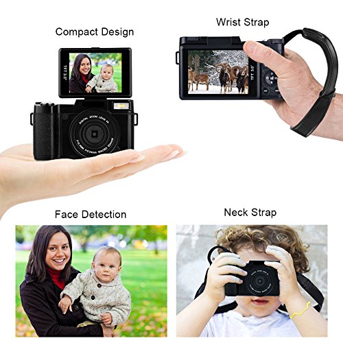 VLOGGING CAMERA: You can shoot with the best quality because this vlogging camera supports full HD 1080p video resolution with 24.0 MP picture (crisp quality). You can find more interesting functions, including anti-shake, beauty face, face detection, smile capture, white balance and so on in this camcorder. Don't worry about long distance shooting because digital 4x digital zoom will do it for you whereas its USB port makes data transfer to your devices quite easily.