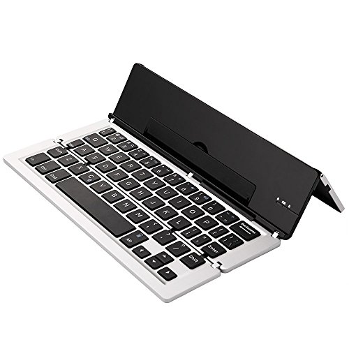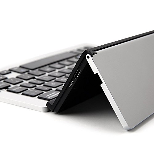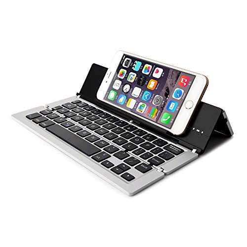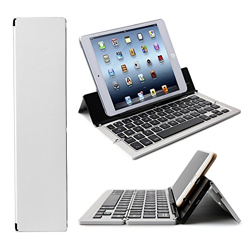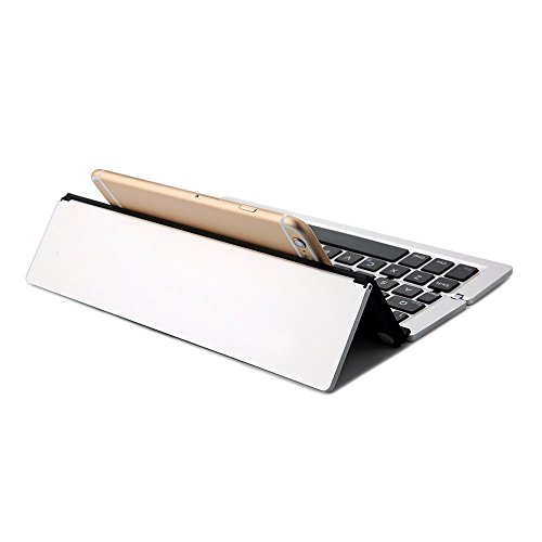 ICE FROG Wireless Bluetooth Keyboard, Ultraslim Portable Universal Aluminum Alloy Foldable Bluetooth 3.0 Keyboard Kickstand Holder For iPhone 7 6 6S Plus iPad Samsung IOS, Android, Windows - Silver