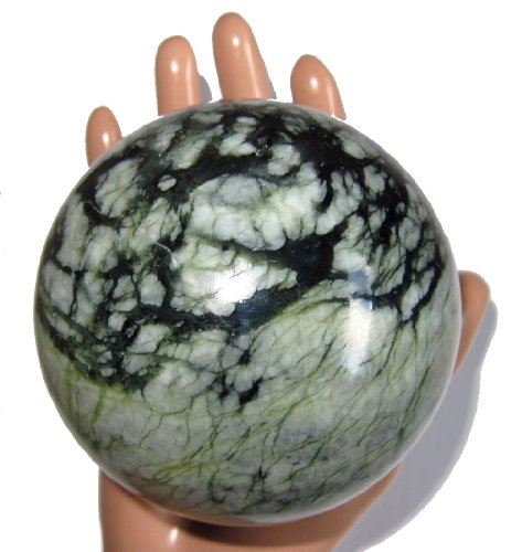 Serpentine Ball 01 Green Web Crystal Meditation Sphere Kundalini Energy Stone 3.3"