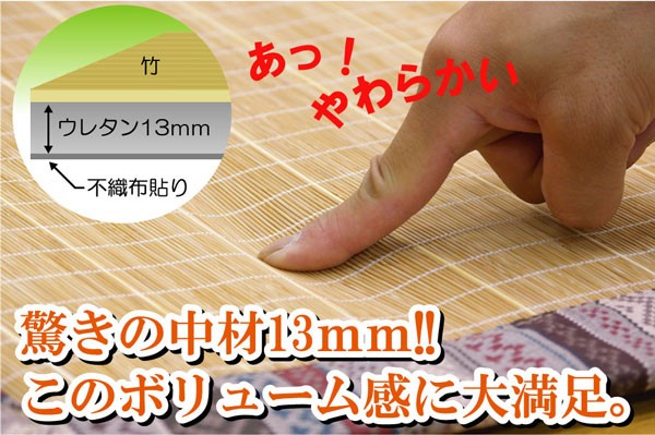 表地=竹 裏地=不織布 中材=ウレタンフォーム13mm ヘリ=綿100%