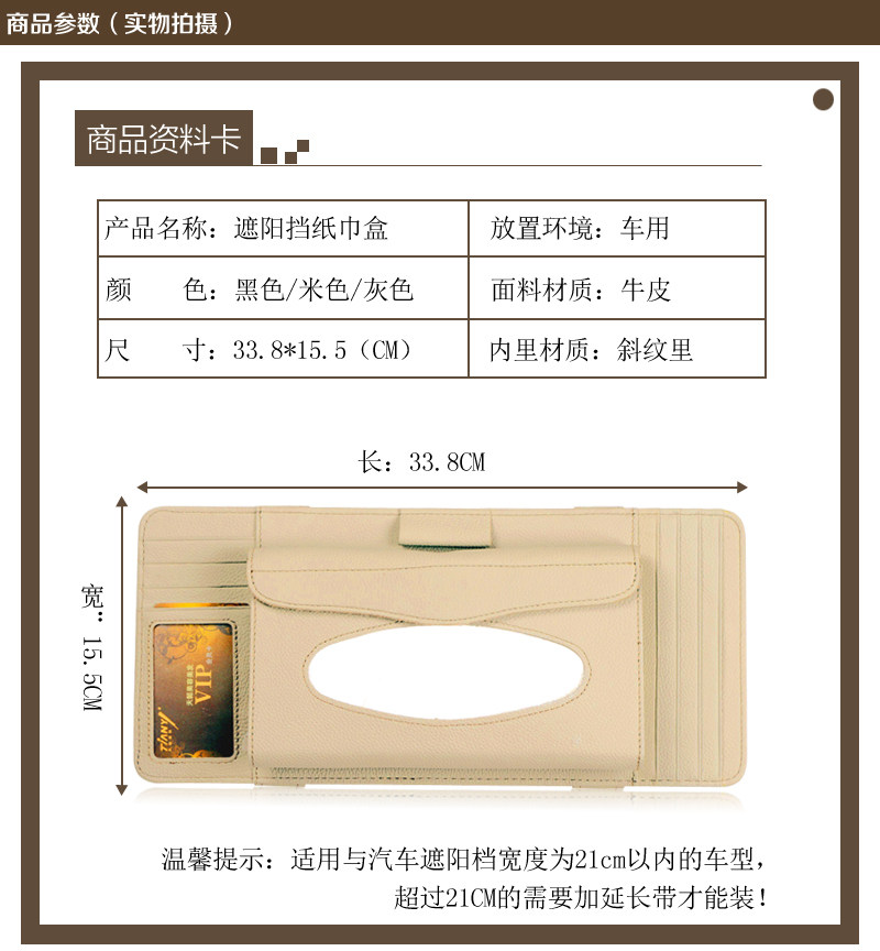Note: This product is suitable for automotive installation in the sun visor, the appropriate size of the sun visor 【Sun visor width of 21 cm or less can be installed, more than 21 cm above the bandage is not installed】. Installation is not on the models are generally large SUV car, the proposed sun visor larger owners about the width of the visor is appropriate.