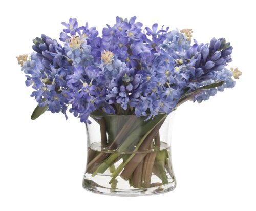 FAB Flowers Ice Blue Cut Hyacinths in Round Glass Bowl, 12 Inches Length x 11 Inches High
