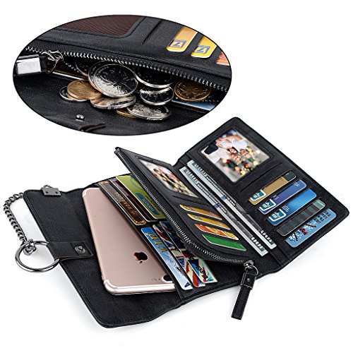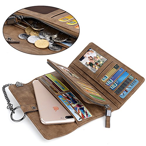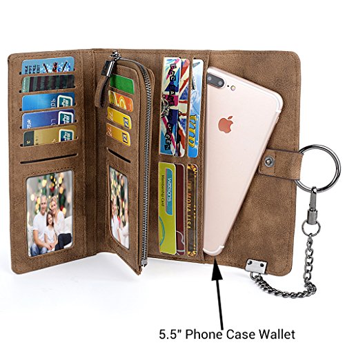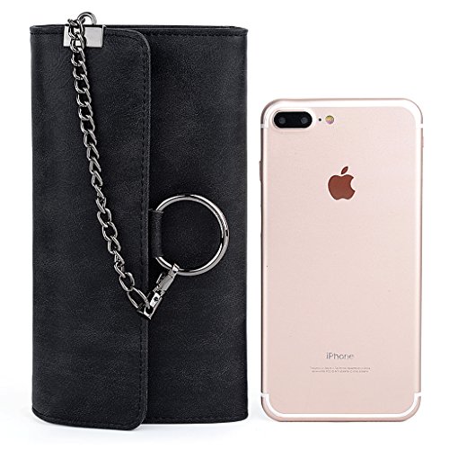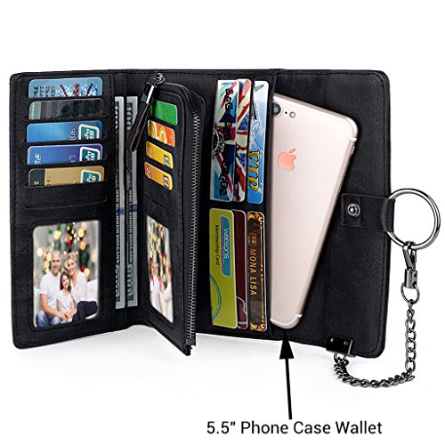 -. Feature : Soft synthetic leather with snap closure design, safe and easy to use. / Detailed streamlined stiching. Full-lined polyester lining. / Large Capacity due to 17 card slots, including 2 ID slot. 2 bill sections, 1 5.5" phone pocket and 1 coin/receipt zipper pocket. / Comfortably holds your credit cards / ID card / bills / 5.5" smartphone and under, like iPhone 7 plus/6 plus/7/6s/6/5s/se, HTC 10, LG G5/G2/K3, Sony Xperia XZ/Z5. Perfect gift for teen girls/mother/wife/girl friend. / Dimensions: 7.59"L x 1.29"W x 4.17"H.