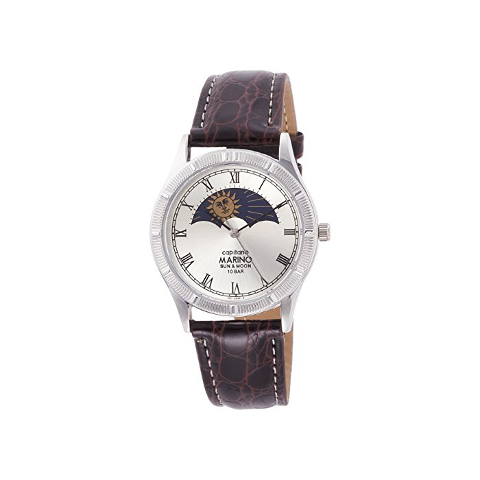 [말리 노《갸피타노》]MARINO capitano 손목시계 SUN & MOON 산&문 레더 밴드 브라운 MC-281M-5 맨즈