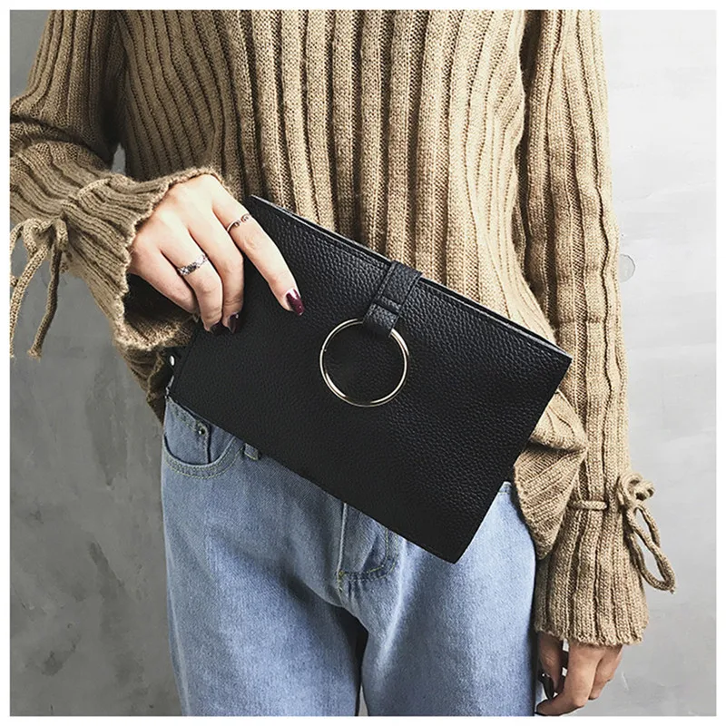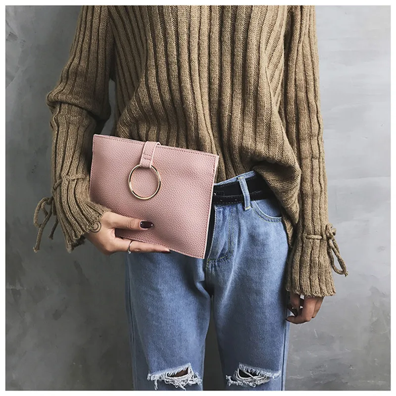 woman Messenger Bags:Leather Simple Round Ring Messenger Bags