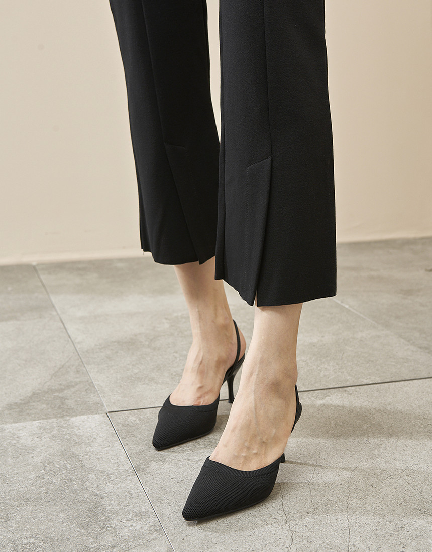 롱 한 다리길이를 연출해주는 절개 부츠컷 밴딩 팬츠에요