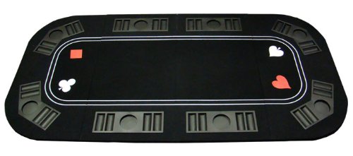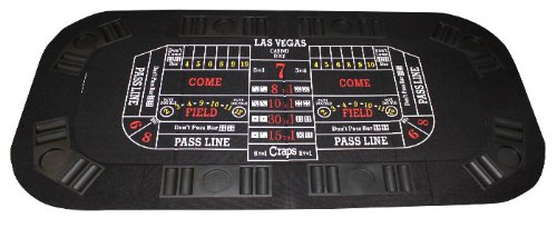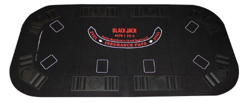 Bring casino excitement to your home with this table! From a space-saving folded position, this table top opens up to reveal a black 63 1/4" long poker playing surface that includes built in chip trays and 8 cup holders. If you are not in the mood for poker, you can add the folding removable craps or blackjack surface. Both the poker top and the craps/blackjack surface fold up for easy storage. Comes with a nylon carrying case. 63 1/4" x 31 1/2".