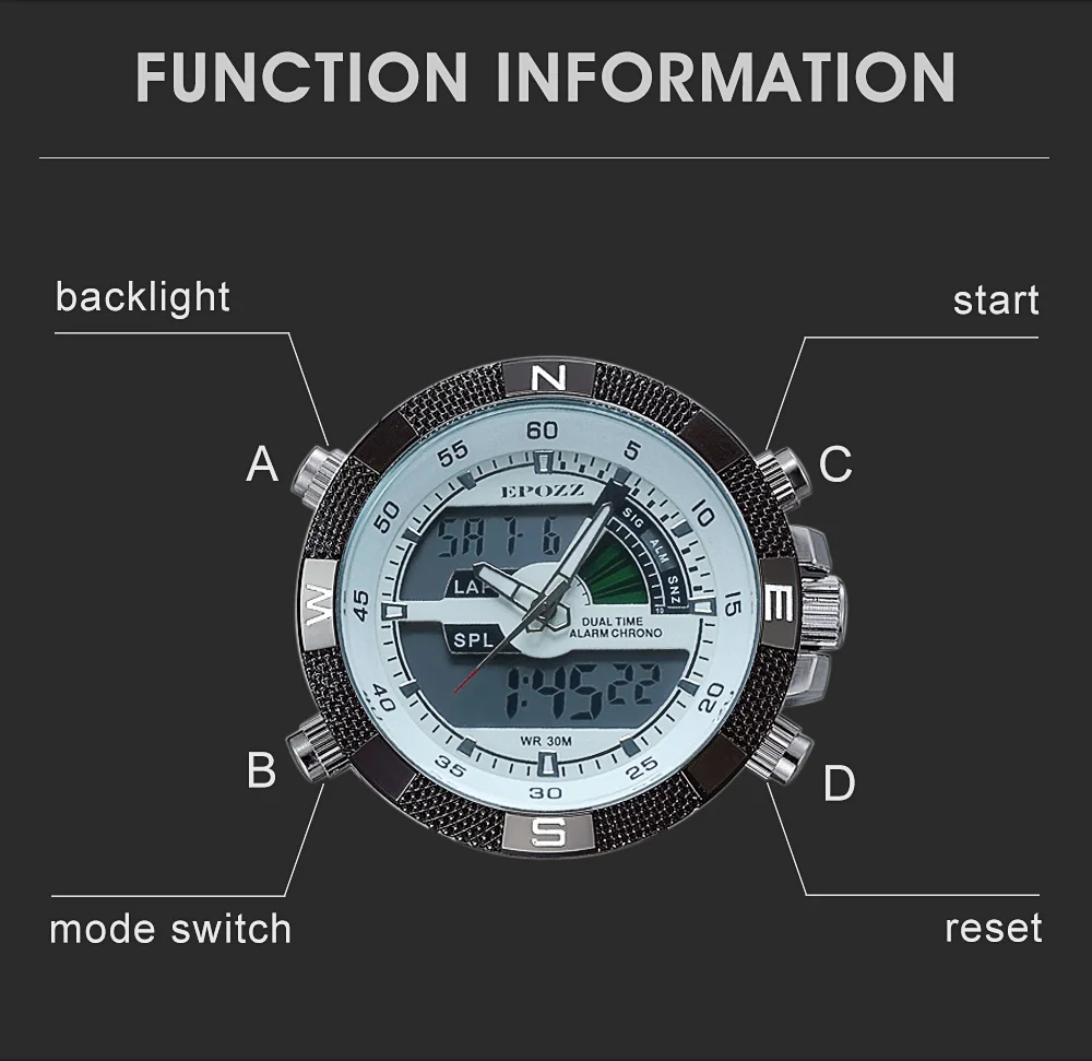 Movement:Quartz,Dual Display
