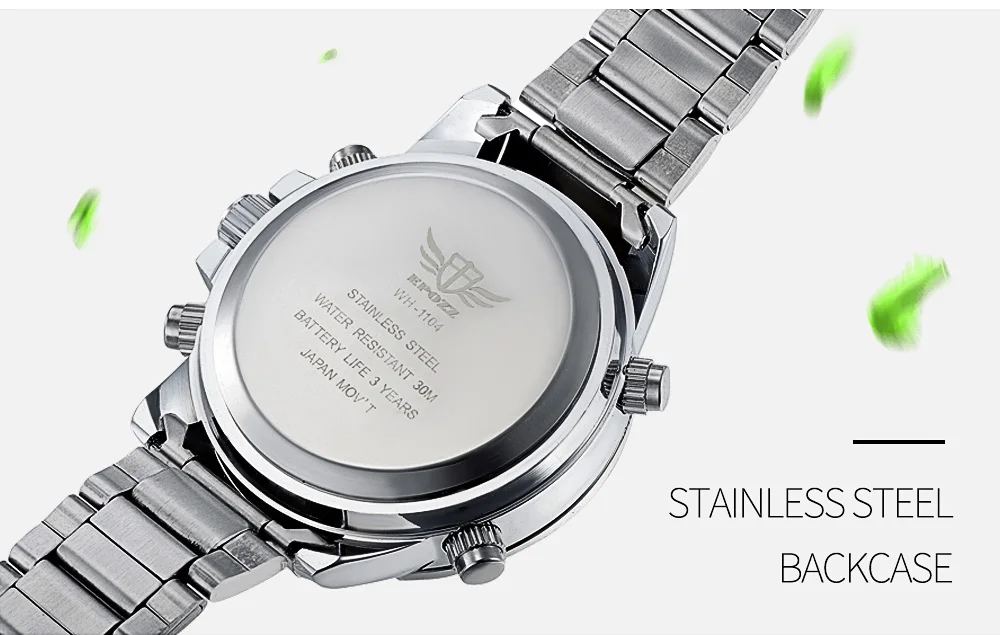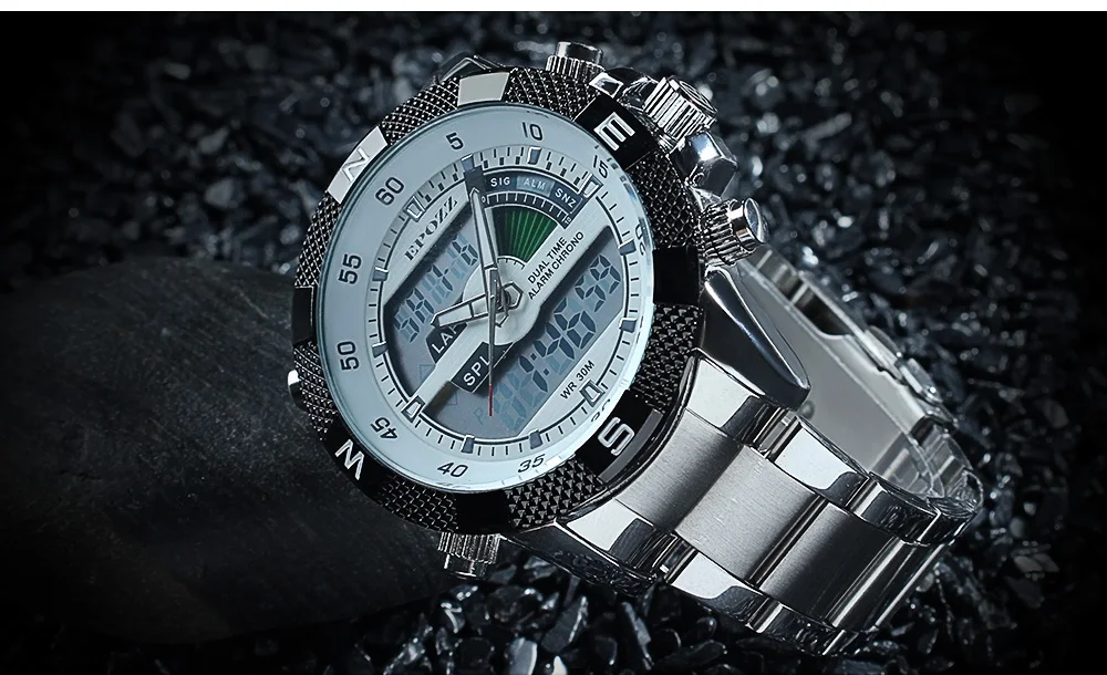 Feature:Water Resistant,Stop Watch,Auto Date,Complete Calendar,Back Light,Alarm