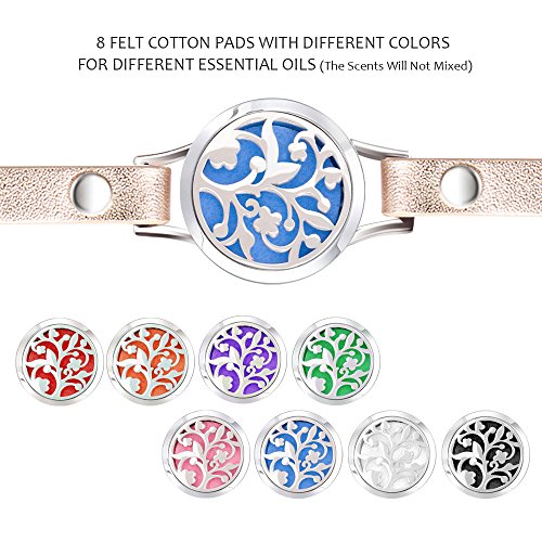 Tree of Life Design Aromatherapy Essential Oils Diffuser Bracelet with 8 Color Washable and Reusable Felt Pads, Enjoy Essential Oils Anytime Anywhere...