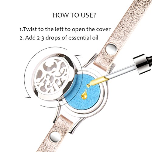 [Easy to Use] Screw off the lid in counterclockwise direction to open the locket. Put the pad in the locket and add 3-5 drops of the essential oil on the felt pad. Then Screw on the lid. It will make you surrounded by a charming and pleasantly aroma for a couple of days.