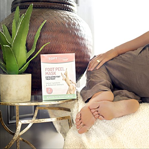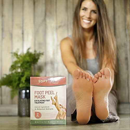 -. Feature : The best foot care treatment for dry, cracked and calloused feet. You get soft, beautiful feet in just 1-2 weeks! / Made with natural ingredients and botanical extracts, Soft Touch Foot Mask is completely safe for use for men (fits up to size 11) and women. / Getting great looking feet was never easier! Easy to apply and use: just apply and let the foot mask peel do its work. No scrubbing, no pain, just nice smooth feet. / Just cut a hole in the booties, slip your foot in, seal it, and relax for an hour while the Soft Touch foot mask peel kit goes to work on your foot, moisturizing and exfoliating it with the gel. / 2 treatments of foot peel mask booties in the pack. Use one now and save the other pair for later.