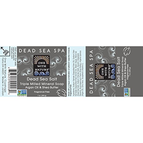 MADE RIGHT AT THE SOURCE - THE DEAD SEA: One With Nature Dead Sea Mineral Soap bars are 100% Natural, Non GMO, Cruelty Free, and are made with a combination of Dead Sea Mineral Salt, Argan Oil, Shea Butter and RSPO Certified Palm Oil Sustainable. Fragrance free, unscented soap.