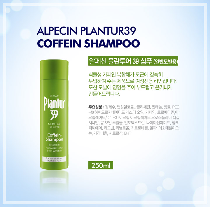 제품특징식물성 카페인 복합체가 모근에 깊숙히 투입하여 주는 제품으로 여성전용 라인입니다.