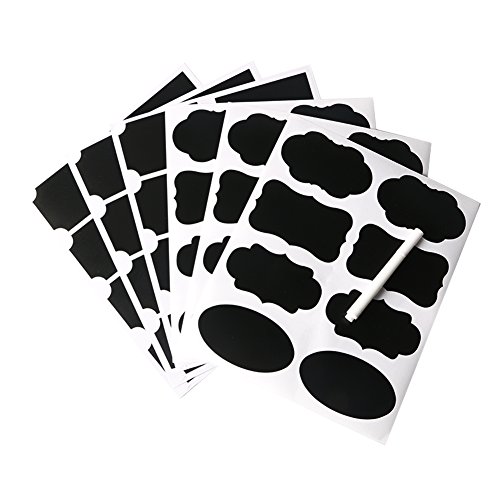 COCODE Chalkboard Label 48Pcs Reusable Blackboard Sticker Labels With Erasable Smooth Liquid Chalk Marker Perfect for Mason Jars,Pantries,Kitchen,Craft Rooms,Weddings