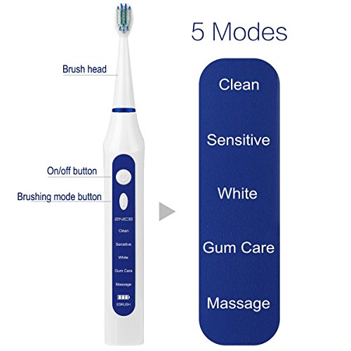 2NICE Electric Sonic Toothbrush Cordless Rechargeable Teeth Brush with 5 optional Modes and 4 Replacement Heads