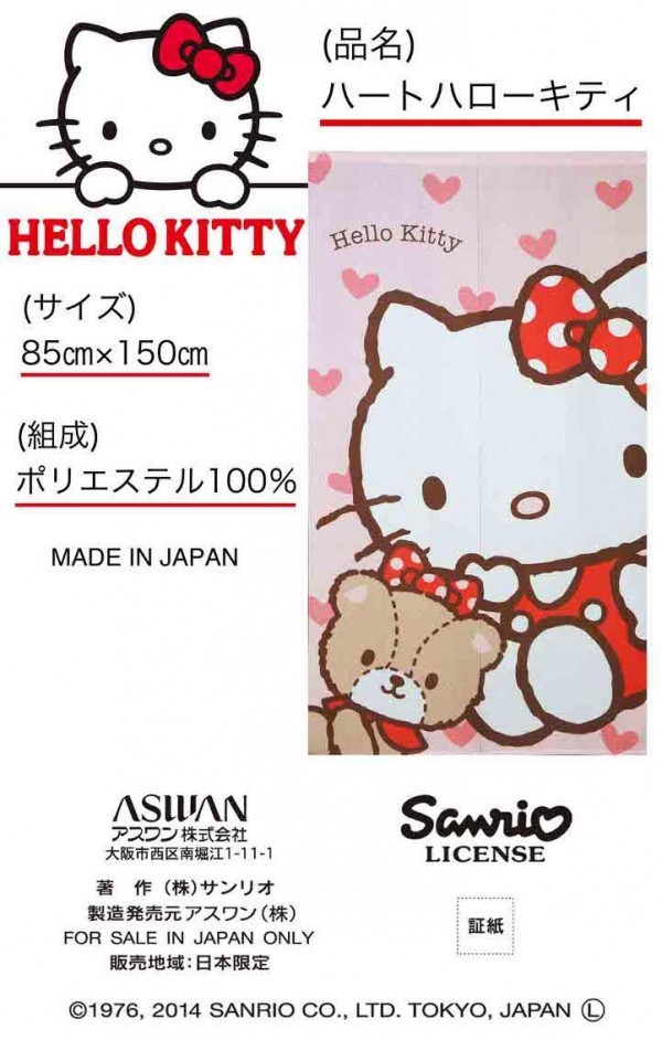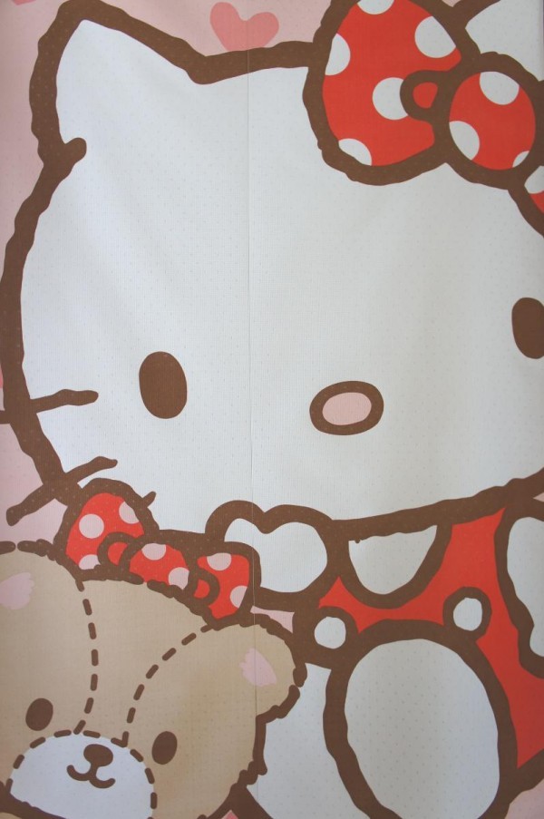 40周年を迎えた大人気のキャラクター!キティちゃんでお部屋をかわいく飾れます♪のれんとしてはもちろんですが、壁に飾ってポスター感覚で使用してもオシャレです。少々透け感のある生地にプリントをし、お部屋の雰囲気を崩さないような仕上げに致しました。 |