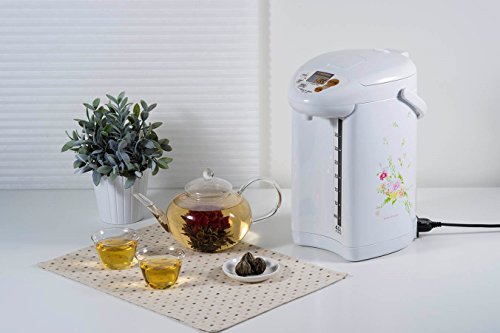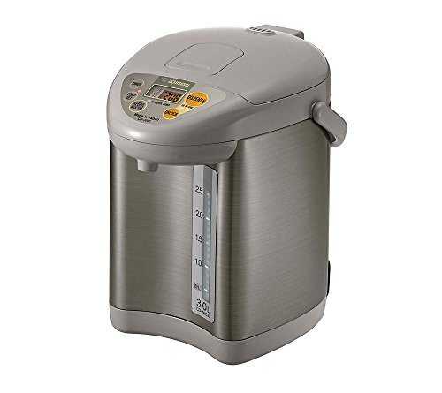 Studio : Zojirushi Publisher : Zojirushi Binding : Kitchen Product Description Zojirushi Micom water boiler and warmer has three keep warm temperature settings at 175 DegreeF, 195 DegreeF and 208 DegreeF. Direct (optional) quick temp mode reaches 175 DegreeF or 195 DegreeF to keep liquids warm directly without reaching a boil. Micro computerized temperature control system. Convenient electric dispensing system. Energy-saving timer feature (6-10 hours). dechlorinate and descaling mode. Multiple safety features: removable magnetic power cord, safety auto shut-off when there is no water, automatic dispense-lock. Easy-to-use control panel with LCD display. Displays actual water temperature at all times. Easy-to-clean nonstick interior. Cafe drip dispensing mode for slower dispensing. Swivel base for serving convenience. Sturdy fold-down handle allows unit to be easily transported. Detachable lid. Bpa-free (all surfaces that come into contact with food or beverage). 0