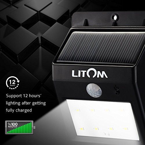 Litom Super Bright 8 LED Solar Lights Wireless Security Light Outdoor Motion Sensor Lights for Patio Deck Yard Garden-4 Pack