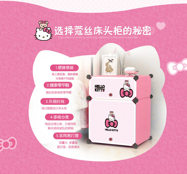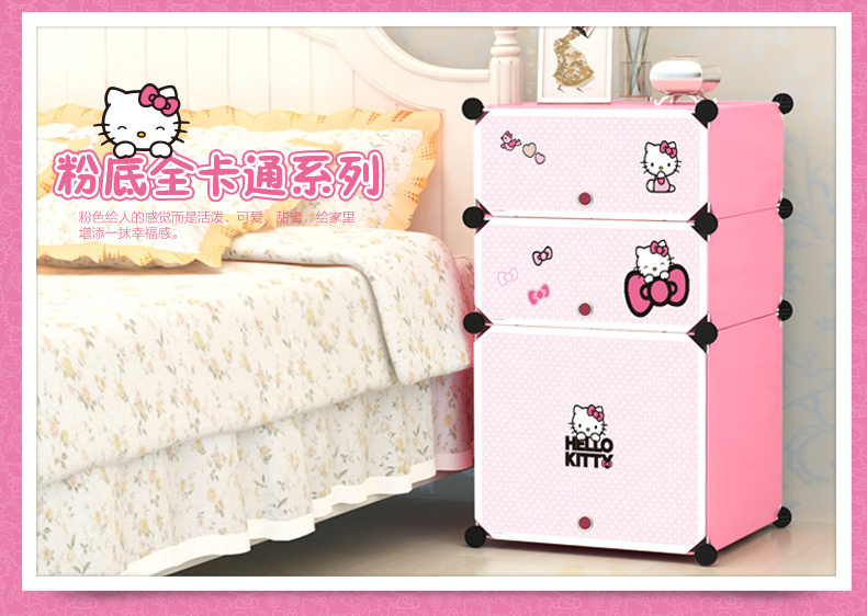 蔻丝简易床头柜简约现代组装衣柜塑料收纳柜迷你柜子卡通儿童特价