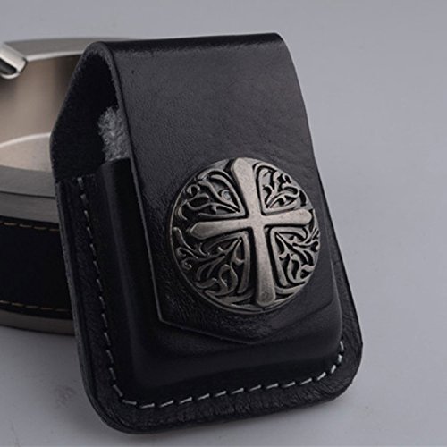 (LIVIQI TOY)/Household Supplies/Lighters Matches/DIRECT FROM USA/Hand Crafted Leather Lighter Holster Sets, Many Pattern Designs, Free Personalization (Cross, Black)