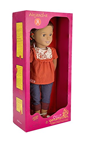 - 18" COLLECTIBLE ALEJANDRA DOLL – Get ready for fashion and fun with Alejandra! She likes climbing trees, catching butterflies, and making a difference. She has dark brown hair, deep brown eyes that open and clothes, and a smile that lets you know how happy she is to see you!