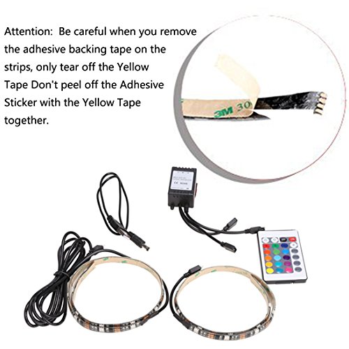 Control the Light with Remote - Come with 24 key remote controller, has 16 colors, 4 different light control functions. You can use the remote control change the color, the brightness as well as different lighting modes. Wireless range: 50ft. NOTE: Comes with a Spare 3M Adhesive Tape for your convenience.