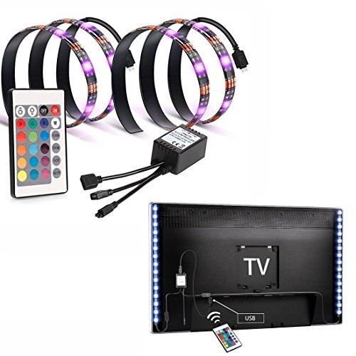EveShine Bias Lighting TV Backlight for HDTV LED Strips Led Lights with Remote Control, 2 RGB LED Strip Home Multi Color RGB LED Neon Accent TV Lighting for Flat Screen TV Accessories, Desktop PC