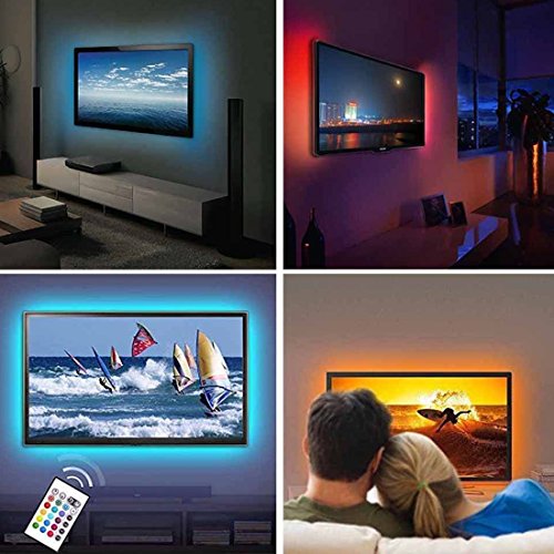 Fit your mood - Customized light kit for 32 to 46 inch HDTV. You can Cut the strip lights With Scissors On the Cut Marks (White Lines) to Fit The Desired Size of Your TV. Use the LED Strip to light up or create festive lights on your monitor, TV, or furniture. Choose from solid colors, strobes, or cycling colors to fit your mood! You can easily swap between colors and lighting modes using the remote control.