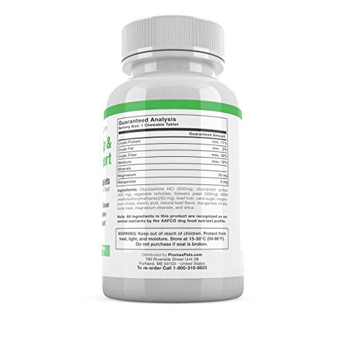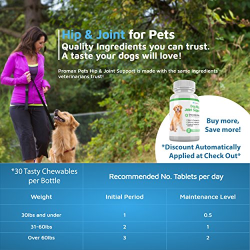 30 TASTY TABLETS, Promax Pets Hip & Joint Support is made with the same ingredients veterinarians trust! Our tasty Hip & Joint Support is made into a chewable tablet packed full of natural flavor to make it delicious. Promax Pets will provide your dog with nutrients it needs to maintain healthy and active well-being.