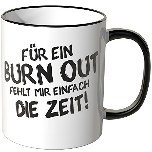 -. Feature : Exklusive Wandkings Tasse mit Spruch: Für ein BURN OUT fehlt mir einfach die Zeit!. Made in Germany! / Keramiktasse mit farbigem Henkel in Ihrer Wunschfarbe. Sie können aus 12 Farben frei wählen. / Hochwertige Verarbeitung. Langlebige Qualität. Spülmaschinen- und mikrowellenfest. / Maße der Tasse: Größe ø 82 mm, Höhe 95 mm, Fassungsvermögen 0,3 l - beidseitig bedruckt. / Lieferumfang: 1x Wandkings Tasse mit Spruch: Für ein BURN OUT fehlt mir einfach die Zeit!.