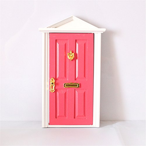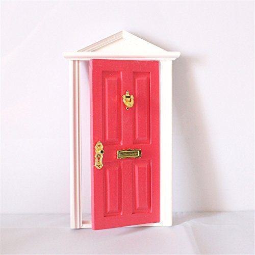 -. Title : 1:12 Miniature Rose Red Wooden Fairy Dollhouse Door Steepletop with Hardware